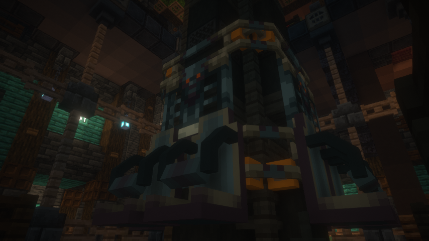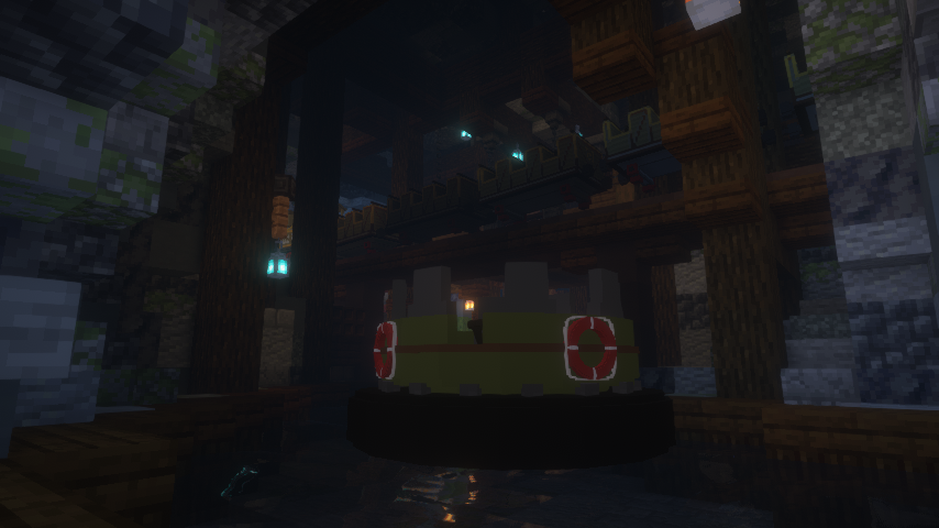 Last but not least, the entire system for Wapiti has been massively updated. While originally working with redstone and TrainCarts (TC) signs throughout the ride, it now functions almost entirely through our core datapack and, while still using TC, runs with realistic physics. This system has been redone 3-4 times throughout the renovation, as new techniques were constantly discovered to make the system more reliable and efficient. This was absolutely necessary, as we wanted to make sure the ride was future proof as well. For example, it allowed us to more easily implement a ride panel in the station, allowing for VIP operation once these ranks are available.